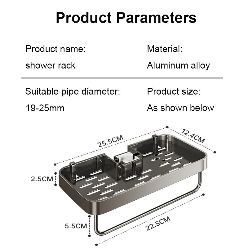 Eck-Duschregal ohne Bohren aus Aluminium – Shampoo- & Duschgelhalter für Duschstangen (19–25 mm)